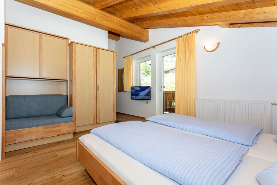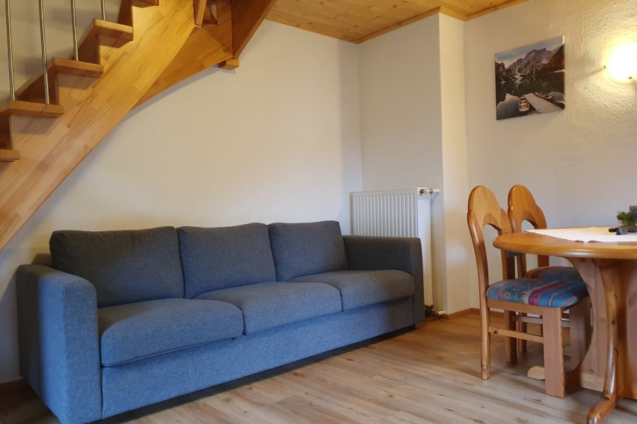 Diese Ferienwohnung im Haus Wilhelmina im Salzburger Pinzgau erstreckt sich über zwei Etagen. Im zweiten Stock befindet sich die Wohnküche mit gemütlichem Sofa und Treppe hinauf ins Schlafzimmer. Im dritten Stock ist ein Doppelbett und ein Sofa/Etagenbett vorhanden, wo sich die Kinder wohlfühlen können. Die beiden Balkone sind Richtung Schmittenbach ausgerichtet und bieten einen wunderschönen Bergblick auf das Bergmassiv „Steinernes Meer“.